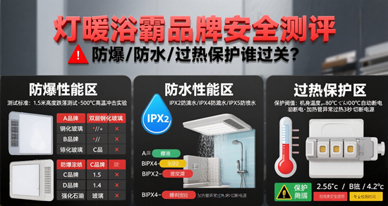 寒冬時節(jié),當消費者在浴室中享受燈暖浴霸帶來的溫暖時,一場關于安全的隱形較量正在上演。2024年12月,上海奉賢區(qū)一戶居民家中因浴霸線路故障引發(fā)火災,浴室吊頂被燒毀;河南某住宅因燈暖型浴霸起火導致天花板焦黑;江蘇一位女子甚至在洗澡時遭遇風暖浴霸迸濺火花。這些觸目驚心的案例,將燈暖浴霸的安全性能推至輿論焦點。在2025年國家市場監(jiān)督管理總局抽檢中,浴霸產(chǎn)品不合格率達12.3%,其中防爆、防水、過熱保護三大核心指標成為主要失分項。本文通過實驗室數(shù)據(jù)與真實案例結(jié)合,解析主流品牌的安全防護能力。