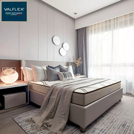 我們生活中使用的大多數(shù)彈簧床墊,它都由表層、填充層和支撐層構(gòu)成。一個舒適的床墊,需要在這三個方面都做得優(yōu)秀。而VALFLEX床墊比普通面料更加舒適親膚,還有抑菌防螨的功能。在花紋設(shè)計上,也有獨特的裥花工藝,典雅大氣,顯得時尚美觀。