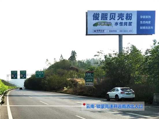 2019年5月,俊熙貝殼粉在全國多省主要高速路段投放高炮廣告:蘭海(貴遵)高速、滬渝(漢宜)高速、成綿復線高速、鎖蒙高速、廣惠高速、榆祁高速、許廣高速、常合高速,跨越大半個中國,借助高炮廣告的品牌傳播效應,為俊熙貝殼品牌發展插上騰飛之翼!