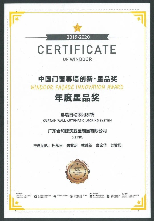 該系統有效解決幕墻上懸窗在無人看管的狀態下,遭遇強風沖擊導致窗扇脫落的安全隱患問題,人性化的設計為人身安全以及公共安全保駕護航。此次獲獎是繼榮獲廣東省高新技術產品后的又一重要榮譽,證明合和在建筑門窗創新領域的持續投入,用人性化的解決方案推動行業健康持續發展。