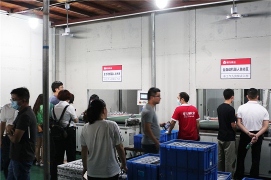 在櫻花智能鎖制造中心總監邱曉輝先生的陪同下,交流團先后到櫻花智能鎖生產車間、產品檢測中心以及企業展廳進行參觀,重點參觀了智能鎖一線車間的制造情況。邱總就櫻花智能鎖的生產過程及制造實力做了詳細介紹。現場,交流團一行對櫻花智能鎖的企業實力,生產規模、產品質量、產品工藝、安全生產體系給予了充分肯定和高度贊揚。