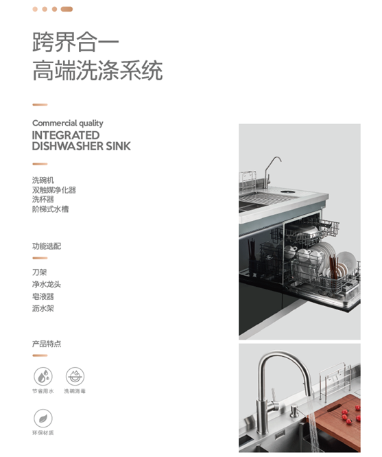 AX6009創(chuàng)新型一體式集成水槽是不同于傳統(tǒng)水槽的多功能水槽,除了水槽部分外,還配有獨(dú)立的8套嵌入式洗碗機(jī)、可選配自動(dòng)垃圾處理器、洗杯器等系統(tǒng)和功能。新產(chǎn)品所配有的洗碗機(jī)分層設(shè)計(jì),疊放自如,具有紫外線滅菌、自動(dòng)烘干等功能,一鍵式輕松搞定洗碗問題,不再為洗碗而煩惱。自動(dòng)垃圾處理器噪音低、粉碎凈,讓飯后殘余垃圾粉碎排出,零堵塞更環(huán)保。槽體的另一側(cè)配有獨(dú)立的洗杯器,讓清洗水杯、奶瓶、酒瓶更易潔方便。諾帝瑪廚衛(wèi)只有你想不到的,沒有他們做不到的,敢于挑戰(zhàn),敢于書寫,拒絕同質(zhì)化發(fā)展。