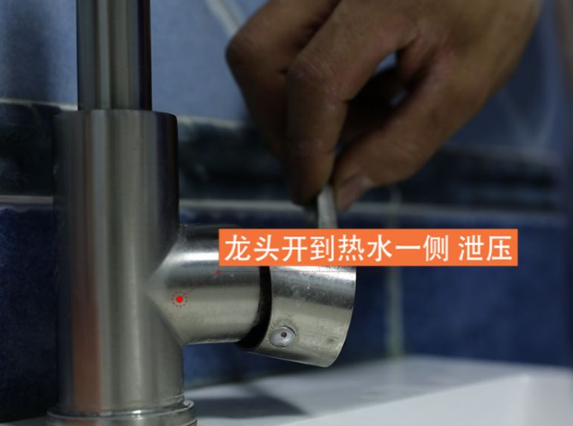 第三是關(guān)閉進水閥,第四是釋放熱水的壓力,它必須打到純熱水一側(cè),并釋放壓力。