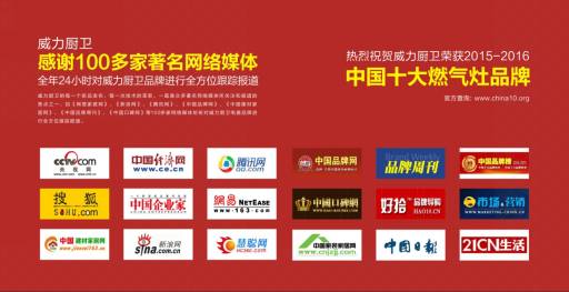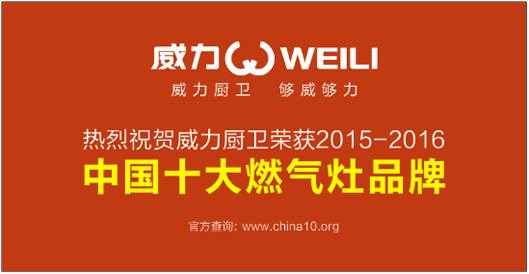 2015-2016年“中國十大品牌”的評選活動,為這些優秀品牌提供了一個最佳的展示平臺。評選活動自2015年末正式啟動以來,閱盡千帆,數盡百舸。在廣大網友、消費者和業內權威專家的共同見證和監督下,終于劃下完美的句號。近期,在萬眾期待下,獲獎品牌已全部揭曉,威力廚衛以第六名的排行榮獲“中國十大燃氣灶品牌”。