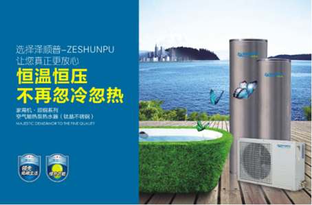 澤順普空氣能熱水器研發多種系列商用機,其中高溫商用機系列分為5P 、10P、25P水循環系列,利用“逆卡諾“原理和工質的物理特性,通過壓縮機消耗一小部分的電能做功,使工質產生物理相變(氣態---液態---氣態),利用反復循環相變過程不斷地將處于空氣中的熱量,并轉移到具有強保溫性的儲熱水箱中加熱制取熱水,制熱過程中電熱能轉換效率可達到400%左右或更高,制取熱水溫度最高溫度可達到95℃,適用用各種特殊工廠場所,并且采用了最先進的控制系統,保證了出水溫度,系統穩定,熱效率高。還有常溫商用機系列,其中有3P、5P、10P、25P水循環系列,適用場所有學校、醫院 、酒店、住宅小區等。最后是家用機系列的,分為1P、1.5P、2P氟循環,主要適用于各類家庭、高層住宅和城鄉多層住宅樓,其優點有:一、全智能控制,性能穩定,機組壽命長,全天候熱水供應;二、制熱效率較傳統能源大大提高,適應于-10℃以上的氣溫環境;三、能耗低,僅分別為電的1/4、燃氣的1/3、太陽能熱水器的1/2。