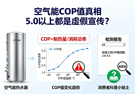 當您在選購空氣能熱水器或采暖設備時,一個醒目的“COP值高達5.0”的宣傳語,是否瞬間擊中了您的“節能”痛點?在商家“一度電產生四度甚至五度熱”的承諾下,空氣能仿佛成了新時代的節能圣杯。然而,冷靜下來思考,這個聽起來近乎完美的數值,究竟是技術突破的福音,還是營銷話術下的“海市蜃樓”?今天,我們就來深入剖析,揭開空氣能COP值背后的真相,探討5.0以上是否真的等同于虛假宣傳。