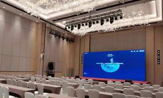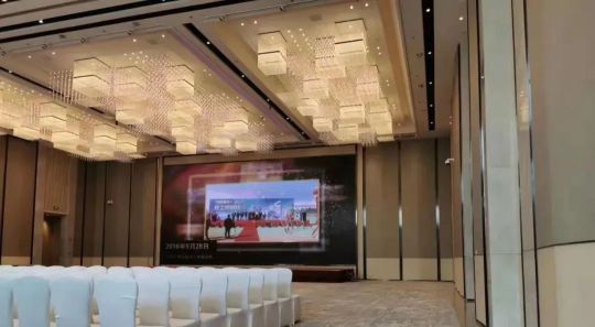尤為750平米無柱宴會廳的水晶燈飾,滿堂光色,熠熠生輝。JINHAN金漢燈飾對每一格的頂飾,采取三種形態混搭的藝術形式——光立方藝術燈、水晶球藝術燈和亞克力藝術燈,進行創意化定制,三種燈體均又分別包含三種尺寸,錯落有致。