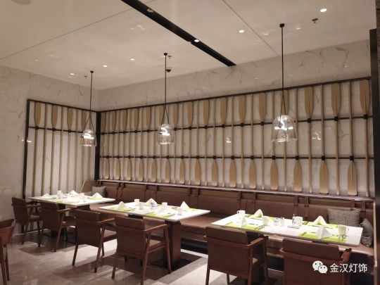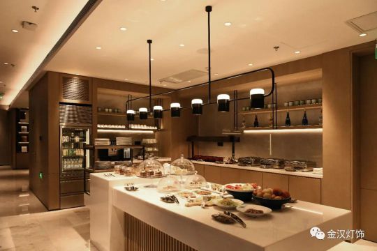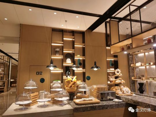 無論在自助區還是就餐區,JINHAN燈飾均采用極其簡約的餐吊燈飾造型,達到造型藝術和燈光藝術融為一體的效果。