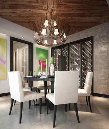鹿角的吊燈,原本不是太過常見的一種燈飾,此種造型較為別致的燈飾,與周圍的環境、風格融合時,效果也是比較好的。