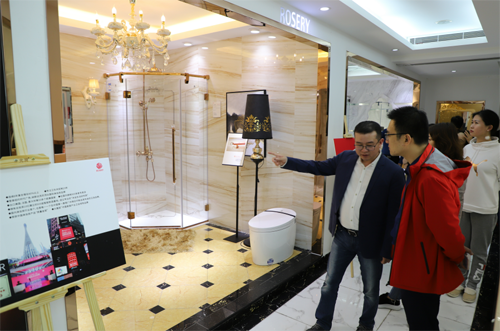 在展廳里,玫瑰島核心團(tuán)隊(duì)向上海紅星美凱龍住建領(lǐng)導(dǎo)一行詳細(xì)地介紹了玫瑰島全衛(wèi)定制六大產(chǎn)品矩陣之核心產(chǎn)品——安全+易潔二合一,人文與技術(shù)結(jié)合,自帶治愈焦慮的屬性,讓消費(fèi)者洗得放心、洗得舒心、洗得省心的玫瑰島第四代淋浴房。