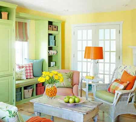 暖黃色+薄荷色營造春天般明媚空間