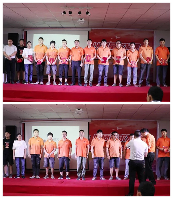 總經(jīng)理馬志先生為獲獎家人頒獎,品質(zhì)部經(jīng)理喻雄做活動總結(jié),優(yōu)秀匠人代表張遠培、鐘宇、王華保、黃燕峰、劉祥福、羅青國心得分享。