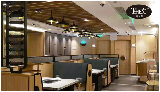 海底撈柔和的燈光填滿店里的每個角落,搭配簡約舒適的桌椅,在這樣一個美好的環境下享受火鍋升騰的熱氣,享受著蘸著料的涮肉觸碰到味蕾,滿滿的幸福感油然而生。海底撈舒適愜意的用餐環境,正是由騰圣家具一手打造。