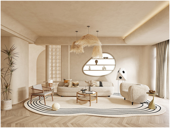 客廳,作為家居環境中出鏡率最高的地方,營造清爽宜人的客廳空間尤為重要。在客廳布置的時候,選用洛品有家侘寂系列家具。比如藤質休閑椅,置于屋內一角,搭配綠植裝飾,清新自然中又透出古樸沉穩的意境,對避暑相當有益,是休息及會客的特色空間。