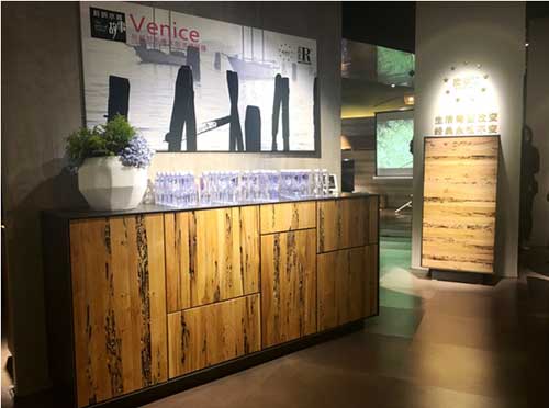 (在活動現場展出的Riva 1920新西蘭濕地杉木茶幾作品)