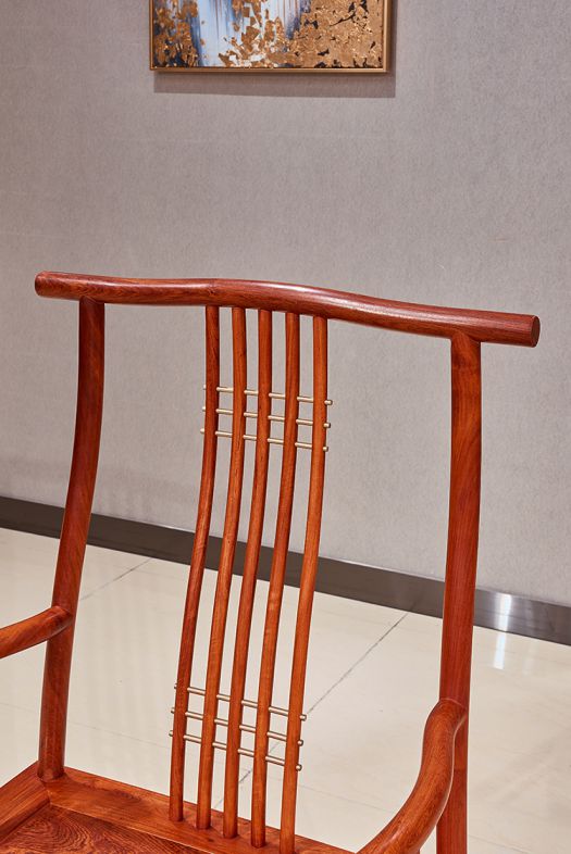 官帽椅搭腦出頭,與古代官員的官帽相似,官帽椅直接將官運(yùn)的亨通顯達(dá)命名其中,寓意仕途的出路。