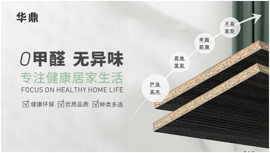 秉持“締造環保家居,引領健康生活”的企業使命,華鼎板材在新國標未實施之前就已經開始布局無醛級板材,形成了以健康環保為核心競爭力的高質量發展道路。華鼎面向市場重磅推出符合國內E0標準的“無醛歐松板”,以優質松木為原材料,搭配使用零醛添加的環保植物膠水,從原材料、膠粘劑質量的選擇上改善板材吸水厚度膨脹率,保障家具穩定性。