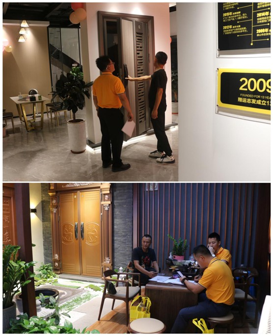 活動期間,翔運志發總經理與意向經銷商進行了深入交流,為他們答疑解惑,做最直接的溝通,并向經銷商傳遞創富共贏局面。意向經銷商通過親自參觀終端門店、觸摸翔運志發的臻品,體驗了翔運志發不銹鋼入戶門卓越的性能,紛紛對翔運志發的匠心智造鼓掌稱贊。