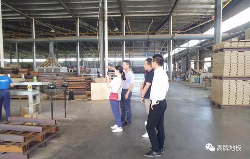 9月29日下午,北京北辰地產集團有限公司(以下簡稱北辰地產)主要負責人員蒞臨高牌地板湖北工廠參觀考察,并在我公司成員陪同下,一起考察了公司的產品展廳、生產車間等,并向考察團介紹最新產品及生產流程。