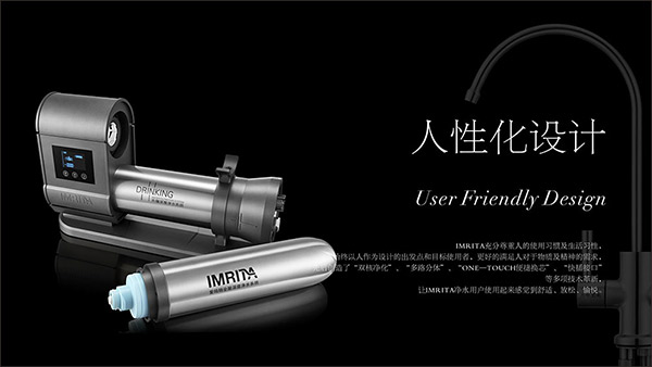 高端全屋深度凈水品牌IMRITA愛瑪特,以“簡約、厚重、科技、精工”的產(chǎn)品設(shè)計(jì)理念與知名公司共同設(shè)計(jì)研究,為高端客戶精心打造安全放心的全屋深度凈水產(chǎn)品。目前,已在全國1000多個大中城市設(shè)立了數(shù)百家品牌旗艦店,1000多萬消費(fèi)者正在使用IMRITA的全屋深度凈水系統(tǒng)產(chǎn)品。