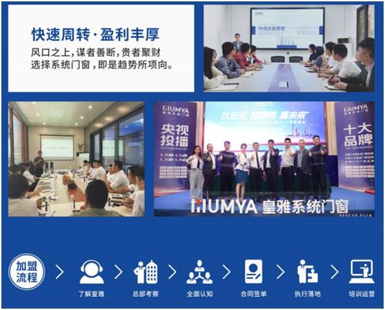 為解決以上6大難題、精準賦能區域工廠,皇雅系統門窗乘勢啟航,幫扶區域工廠思維升級,從經營產品到經營品牌,模式決定速度,管理決定份額,重磅推出十大加盟優勢、系統執行立體化企業戰略規劃。詳細構建加盟工廠的標準管理體系、生產體系、運營體系、服務體系、推廣體系,以及用于賦能經銷商的25套指導手冊。