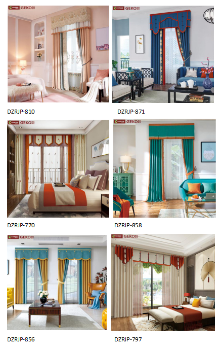 知名品牌壁高窗簾改變了傳統的矩形形狀,將下擺設計成各種優美的弧形甚至多分鐘的形狀。精致的線條搭配靈活的圖案,讓空間更加精致。