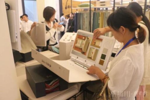 在騰川?布老虎展廳里面漫漫人群中穿梭,不時(shí)見到加盟客戶拿起手機(jī),拍下窗簾的某些細(xì)節(jié),嘴里不住地說著“這個(gè)好看”、“這個(gè)合適”等語。有的人逛累了,就直接坐在休息區(qū)的軟椅上,拿著訂貨單,品品咖啡,聊聊天,如在家中一般自在,騰川?布老虎展廳有著特別濃厚的生活氣息,令人倍感溫馨。