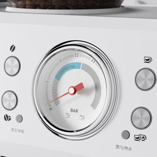 可視壓力表實(shí)時(shí)觀察萃取壓力,萃出金杯豐厚油脂;使用意大利UKLA泵,壓力泵最大可達(dá)20bar壓力,預(yù)浸泡之后充分萃取,釋放意式濃縮的黃金油脂
