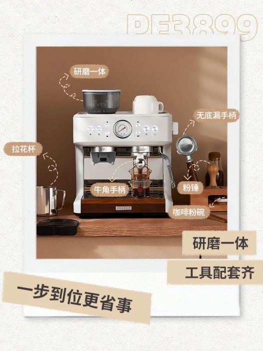 而我們PE3899不僅具有研磨一體的能力,還能滿足一次購機(jī)全配套,拉花杯、無底漏手柄、牛角手柄、粉錘、咖啡布粉環(huán)、木質(zhì)底座……這些通通無需自行購置,貼心小翠讓你一次購機(jī)直接畢業(yè)!業(yè)余專業(yè)都能滿足~
