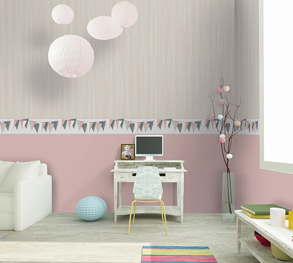 此次展會,豆蔻這一主題中,德國瑪堡壁紙將亮相《童話樂園》系列。《童話樂園》系列不僅適合兒童,對于追求個性活潑空間的大人們也很合適。因為它不僅有各種卡通風格的腰線壁紙,還包含了廣泛的素色款式,其中的粉色款式就十分契合“豆蔻”主題的色調。