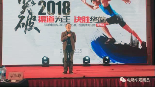 銷售總經理宗總好比航海的掌舵手,對營銷體系的各個環節因時制宜的作出戰略調整和部署,洪都能夠實現銷量翻番的增長,他是當之無愧的最大功臣。整場會議,宗總運用宏觀的大思維,對終端渠道的重要性進行有針對性的分析。拆分2018年,化整為零,季度性闡述了2018年的重大營銷動作,并提出了洪都電動車三年沖刺50萬銷量的目標。