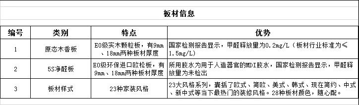 伊百麗全屋定制所使用的板材主要有兩種,分別是“原態(tài)木香板”和“5S凈醛板”,均為E0級以上環(huán)保板材。
