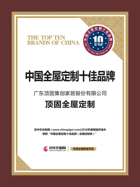 頂固能贏得“中國全屋定制十大品牌”榮譽,這是廣大消費者對頂固品牌的認可,也是其實力的見證。“十大品牌”是一種榮譽和責任,希望頂固在未來繼續發揚工藝精神,為用戶提供極致體驗。