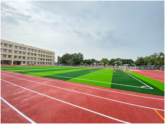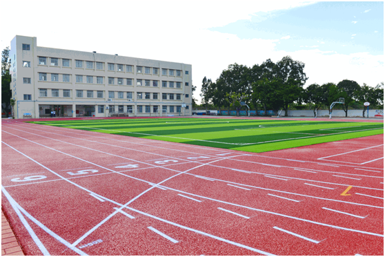 新落成的塑膠運動場由1個環形跑道、1個直線跑道、1個小型足球場、2個跳遠區及其他附屬設施組成。各活動功能區域劃分科學,整個塑膠運動場色澤鮮艷、平整劃一,面層厚薄均勻,具有良好的彈性和防滑性,為師生提供了安全、舒適的運動健身環境。