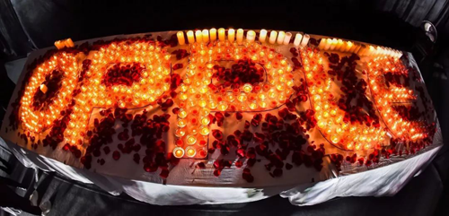 傳燈儀式上,由蠟燭點(diǎn)亮的“OPPLE”。
