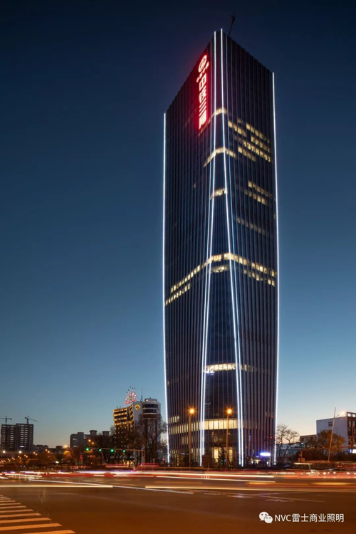 為此,在照明設計上,大廈亮化設計運用彩色燈光描繪輪廓,豐富了建筑色彩,使得大廈的輪廓在夜晚得以清晰可見。