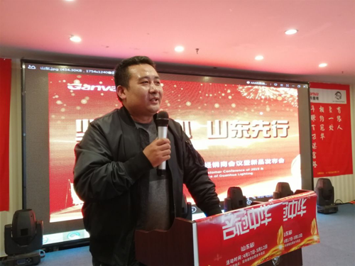 4月17日,以“堅守初心,山東先行”為主題的冠華照明山東經銷商會議暨新品發布會,在山東臨沂華美達酒店隆重舉行。冠華照明董事長余早生、山東運營中心總經理楊忠臣、營銷策劃副總王澤、營銷總監楊克承、產品總監李勇、大區經理王明振,實干家培訓講師韋煜坤,以及來自山東的經銷商出席了本次會議。