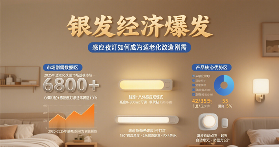 可以預(yù)見,隨著技術(shù)迭代與政策深化,感應(yīng)夜燈將從“家居配件”升級為“健康監(jiān)護終端”,成為銀發(fā)經(jīng)濟生態(tài)中的關(guān)鍵節(jié)點。而這場以“安全”為起點的適老化革命,終將重塑中國老年人的生活方式,讓“老有所安”從口號變?yōu)橛|手可及的現(xiàn)實。