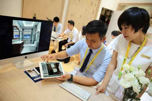 觀眾不僅可以在現(xiàn)場體驗智慧衛(wèi)浴空間,還能進行五星定制,挑選自己喜歡的廚衛(wèi)色彩和款式,搭配出個性化定制空間。戴上VR眼鏡,就能看到未來夢想“家”,即可身臨其境般地穿梭在衛(wèi)浴、陽臺及廚房空間。